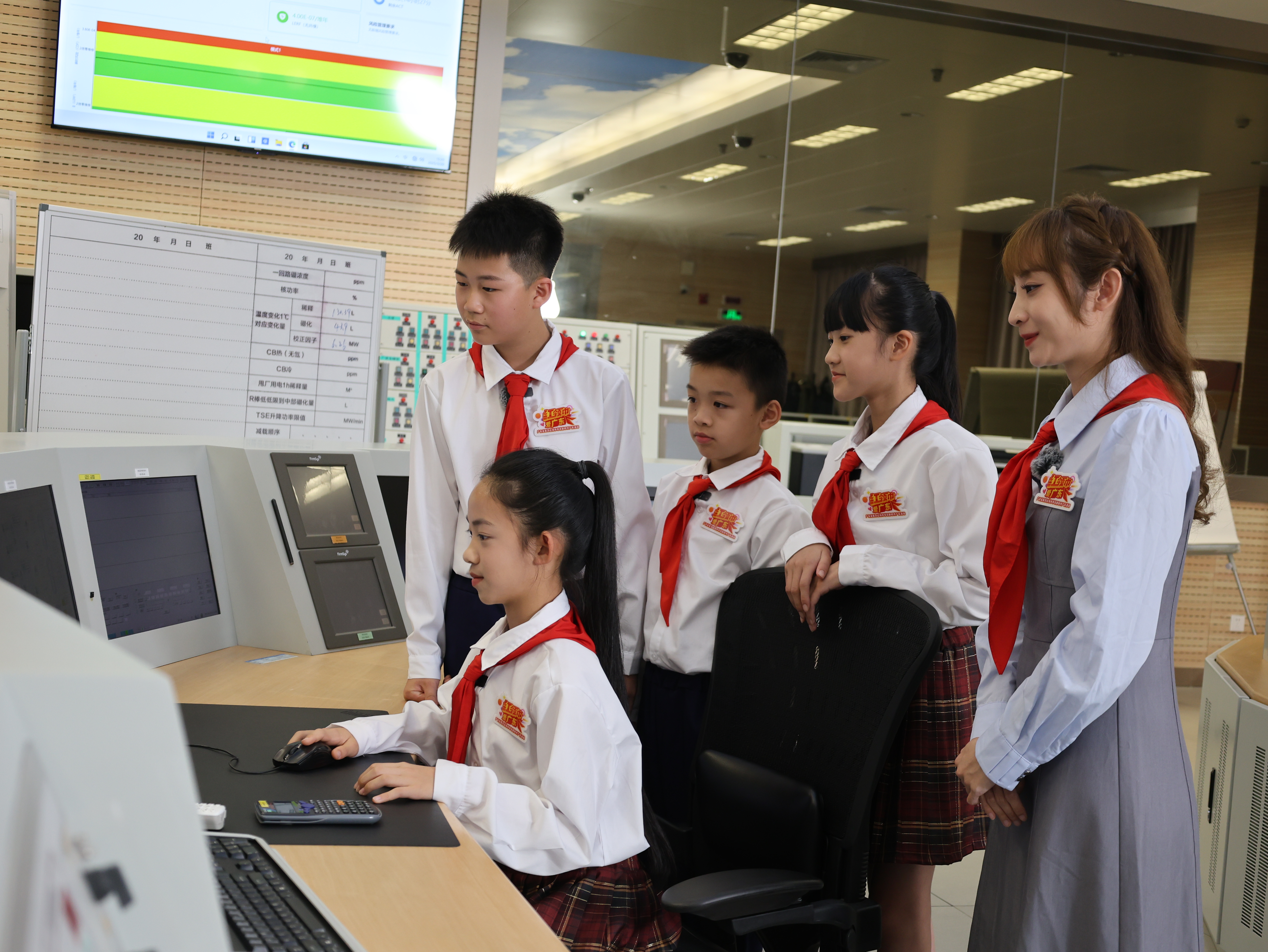 在第三套模擬機前,少先隊員們化身小小操縱員,體驗“信息舉手通報”的規(guī)范流程,感受核電站工作的嚴謹與細致。通過對核電模擬機以及核電站環(huán)境監(jiān)測工作的了解,少先隊員們對于核安全有了進一步體會。